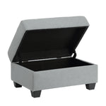 - The matching ottoman includes a hidden storage compartment, providing a discreet and practical solution for storing decorative blankets, pillows, or other essentials.