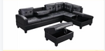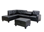 Sleek, simple, and modern, this PU Leather Sectional Sofa with Storage Ottoman is designed for both style and functionality. Featuring a reversible chaise for flexible configurations, the sectional comes with a drop-down cupholder for added convenience and a storage ottoman to help you keep your living space organized. Upholstered in durable black PU leather, this set combines contemporary aesthetics with practical features to elevate any living room.