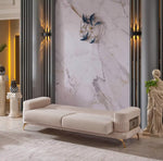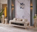 ASPENIA Deluxe Convertible Velvet Sofa Set (3+2+1) – Beige/Gold or Grey/Silver