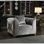 Elevate your living area into a sanctuary of modern luxury with our exquisite living room set, featuring a stunning sofa and loveseat. Crafted with robust solid wood frames, these pieces are designed to provide exceptional durability while adding a touch of sophistication to any space. The elegant gold accent detailing enhances the overall aesthetic, making this set a statement piece for your home.